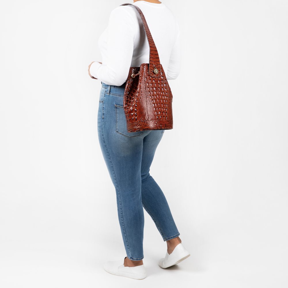 The Allie is a trendy sling-back style inspired by vintage Brahmin shapes. Carry in comfort with an adjustable strap while a drawstring closure keeps your items secure.