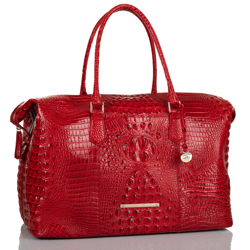 Featured in Carnation Melbourne, our signature croc-embossed leather in saturated true red. Genuine leather.