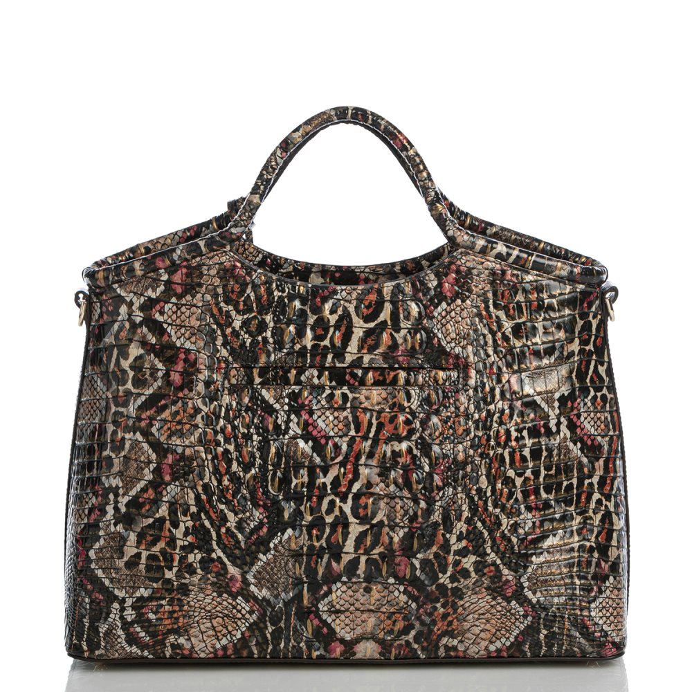 Featured in Charisma Melbourne, an alluring python print with warm pink, gold, and mahogany hues. Genuine croc-embossed leather.