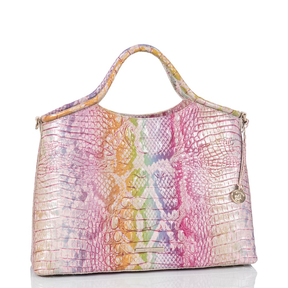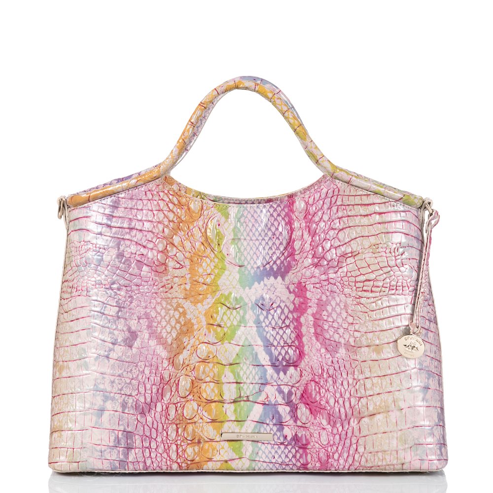 The Elaine is a statement-making satchel inspired by vintage Brahmin pieces. Equipped with a spacious interior and organizational pockets aplenty, carry everything you need by the comfortable rolled handles, or attach the adjustable shoulder strap for hands-free styling on the go.