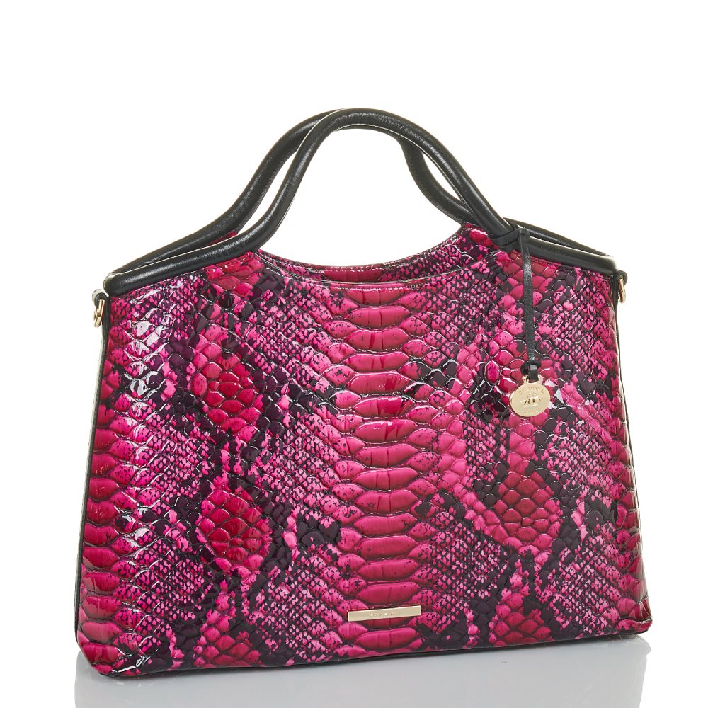 The Elaine is a statement-making satchel inspired by vintage Brahmin pieces. Equipped with a spacious interior and organizational pockets aplenty, carry everything you need by the comfortable rolled handles, or attach the adjustable shoulder strap for hands-free styling on the go.