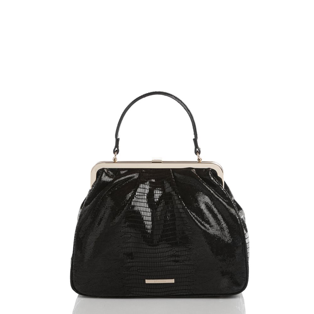 Featured in Black Andromeda, an all-over embossed lizard texture in a luxe black hue with a glossy finish. Genuine leather.