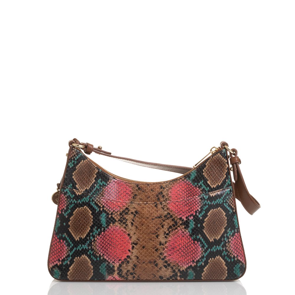 Featured in Multi Caladesi, an on-trend python print with pops of bright pink and teal finished with smooth brown accents. Genuine leather.