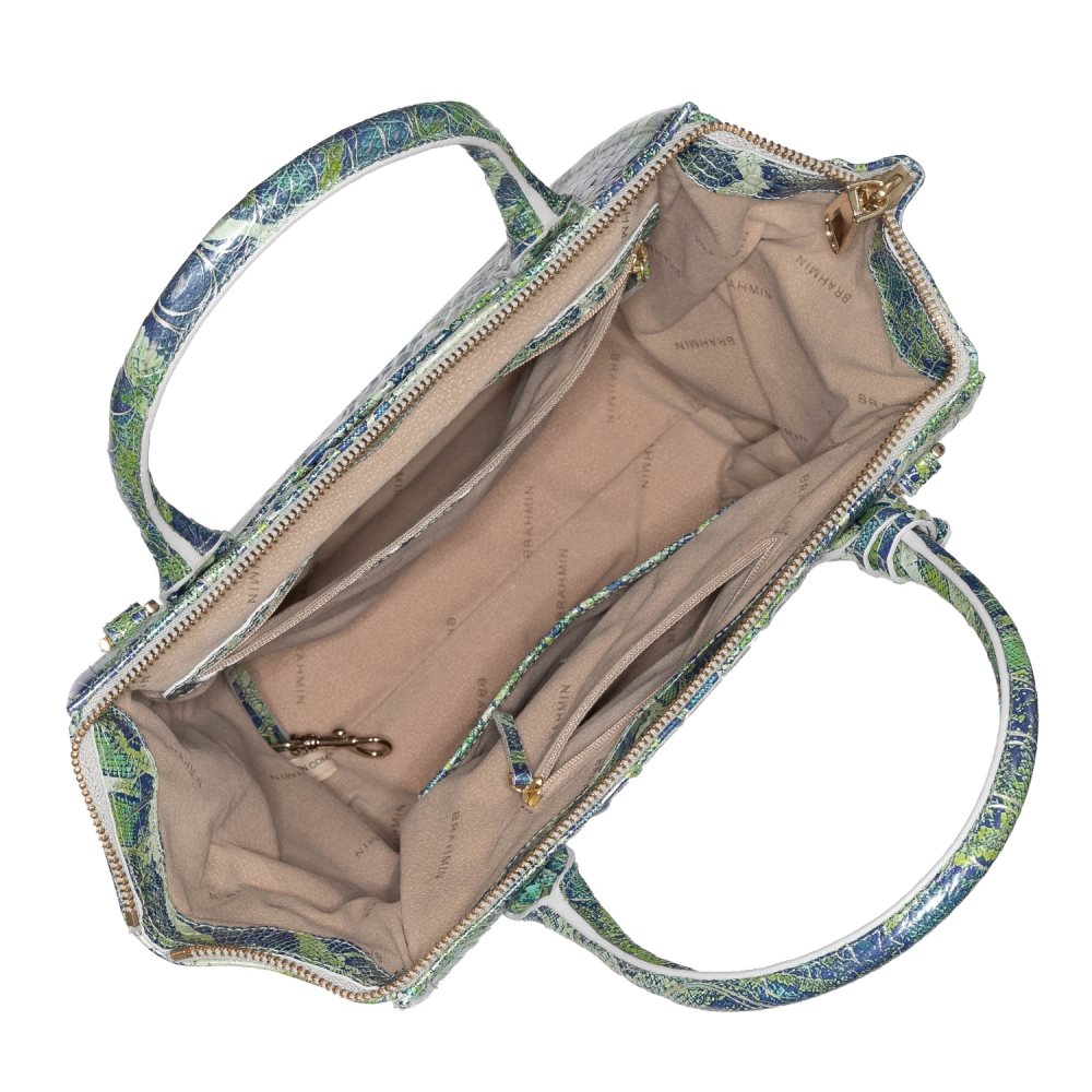 Featured in Green Viper Melbourne, an electric green-and-blue python print guaranteed to turn heads. Genuine croc-embossed leather.