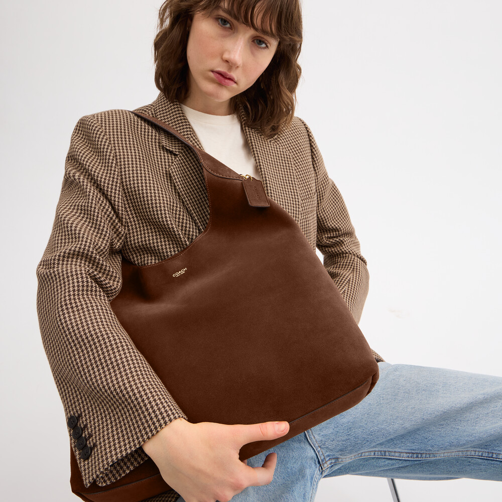 Suede and grain leather Inside snap pocket Magnetic snap closure Handle with 31.5cm drop Fits a 38cm laptop 39cm (L) x 43.5cm (H) x 12cm (W)Our Brooklyn is an elegant, minimalist silhouette