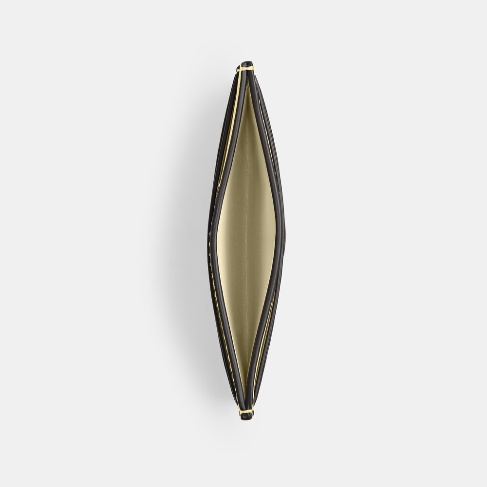 Refined calf leather Five credit card slots 11cm (L) x 7.5cm (H)Crafted of refined leather detailed with our Signature hardware, this case has four card slots and a center compartment to hold more cards or cash. Slip it in your pocket or stash inside your bag.