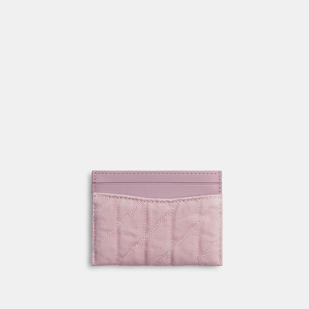 Denim and nappa leather Five credit card slots 11cm (L) x 7.5cm (H)Crafted of nappa leather and quilted denim specially garment-dyed for a soft sun-faded look, this case has four card slots and a center compartment to hold more cards or cash. Detailed with our Signature hardware, slip it in your pocket or stash inside your bag.