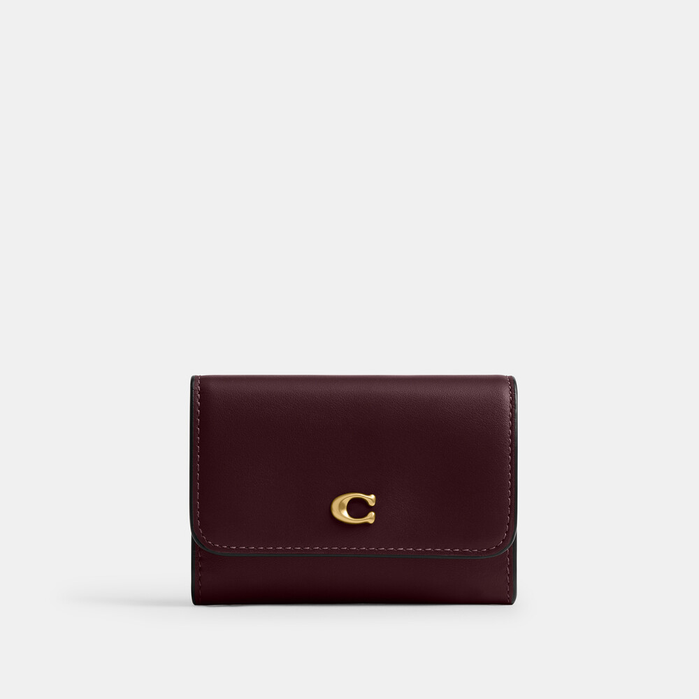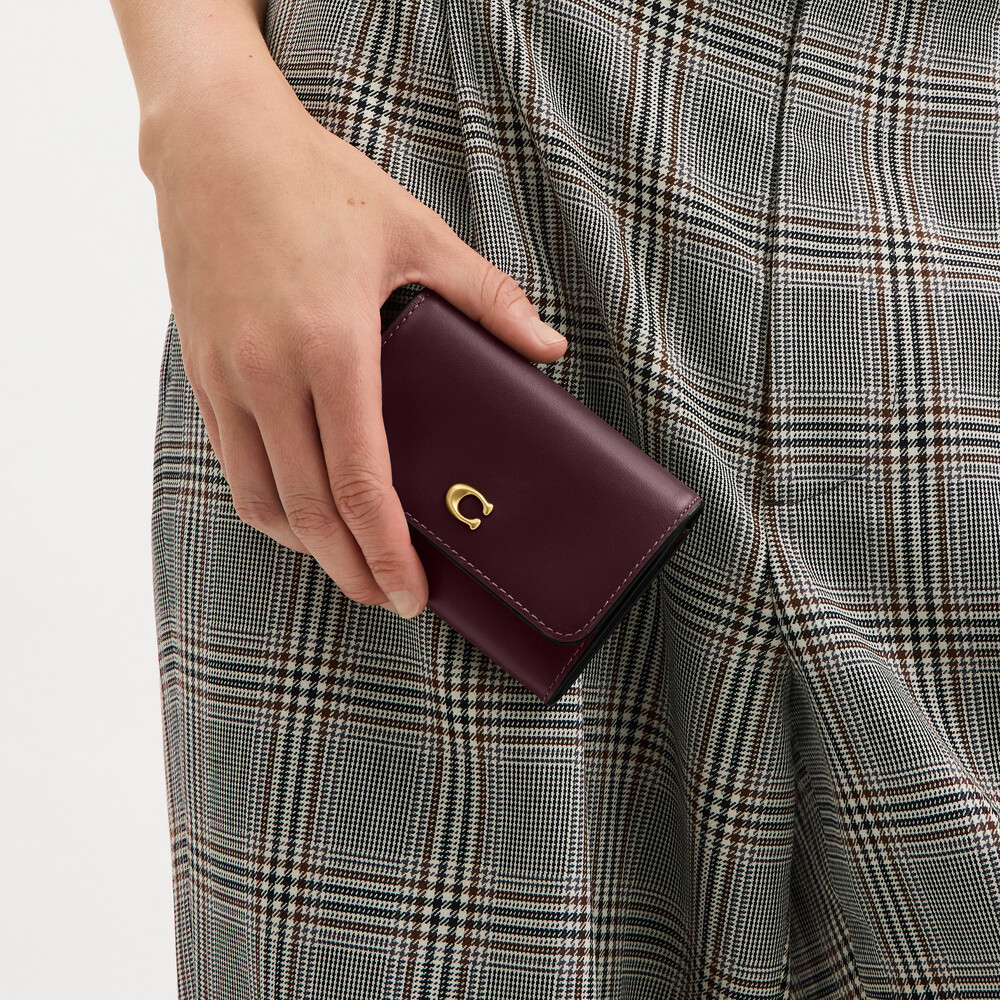 Refined calf leather Four credit card slots Inside zip coin pocket Snap closure Outside open pocket 11cm (L) x 8cm (H) x 2cm (W)A compact alternative to a wallet, this refined leather flap card case has space for cards, cash, ID and a zip pocket for change or small accessories. Finished with our Signature hardware, it features a convenient exterior slip pocket for easy access to essentials.