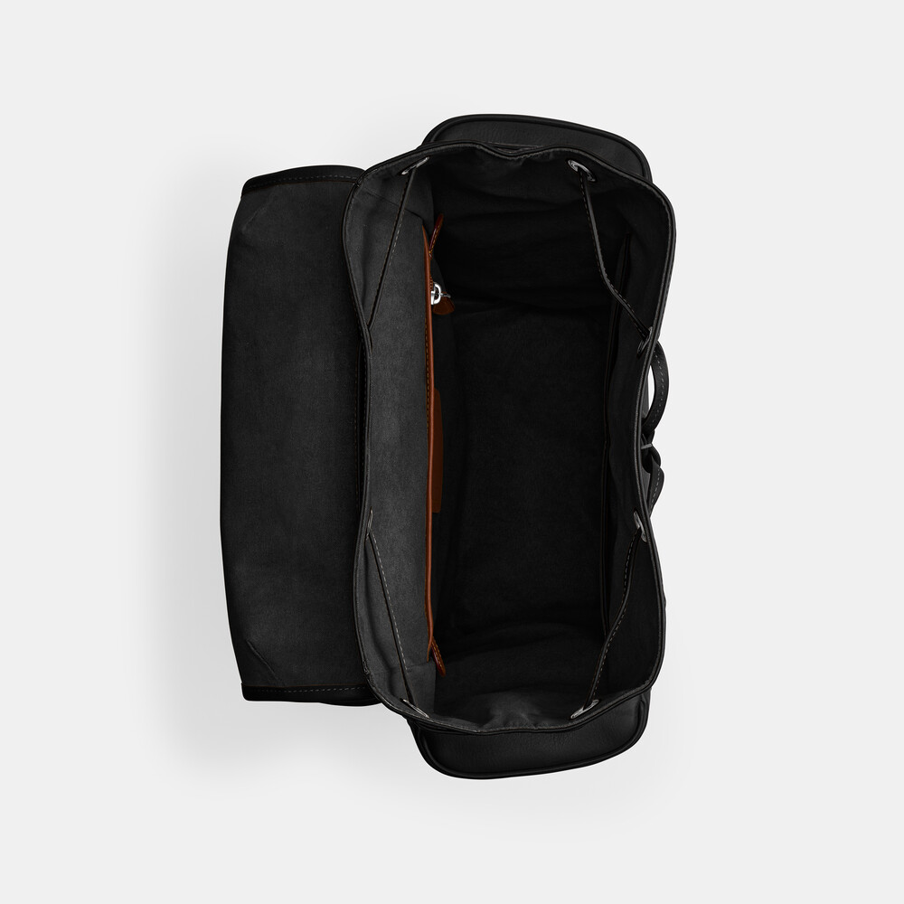 Natural grain leather Inside zip, cell phone and multifunction pockets Inside laptop sleeve Drawstring and snap closures, fabric lining Top handle with 6.5cm drop Outside snap pockets Adjustable shoulder straps Fits a 38cm laptop 31cm (L) x 42cm (H) x 14.5cm (W)Combining effortless style and major functionality, our Hitch takes you to work, weekends and everywhere in between. Crafted of natural grain leather with beautiful texture and soft feel, this organized backpack has space for a 15" laptop, interior multifunction pockets to hold small accessories, and exterior side pockets for easy access to essentials. It's a comfortable lightweight style with leather-covered magnetic snap closures, durable microfiber lining and spacer mesh backing.