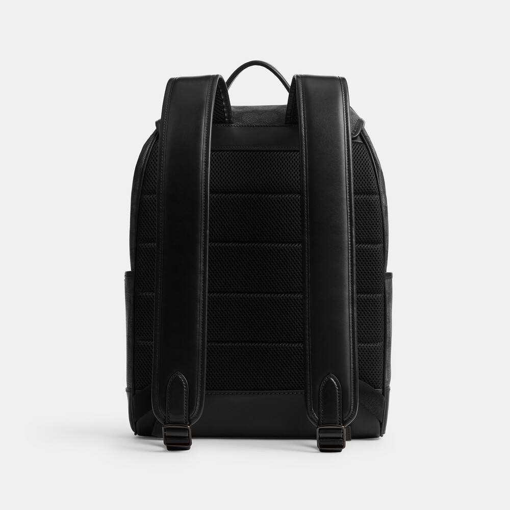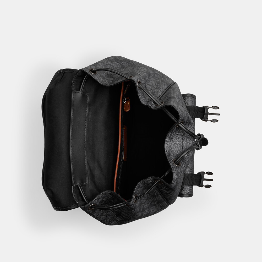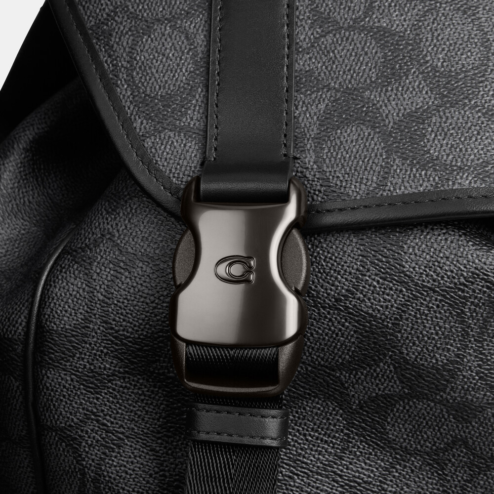 Signature coated canvas and refined calf leather Inside zip, cell phone and multifunction pockets Inside laptop sleeve Drawstring and speedclip closures, fabric lining Top handle with 7cm drop Outside flap and slip pockets Adjustable shoulder straps Fits a 33cm laptop 29cm (L) x 41.5cm (H) x 15cm (W)Made for a life in constant motion, the League keeps your game plan on track. Crafted of our Signature canvas and refined leather, this roomy backpack is a comfortable choice for every day with its padded back and straps. Organized with multiple pockets inside and out, the sporty style has a dedicated laptop sleeve and plenty of space for notebooks, water bottles and other essentials. An exterior zipper gives easy access to the main compartment.