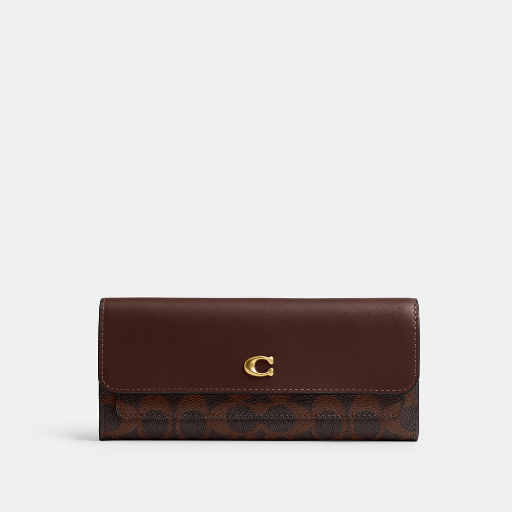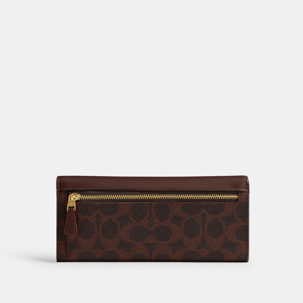 Coach Mila Long Flap Wallet In Signature Canvas - DARK BROWN