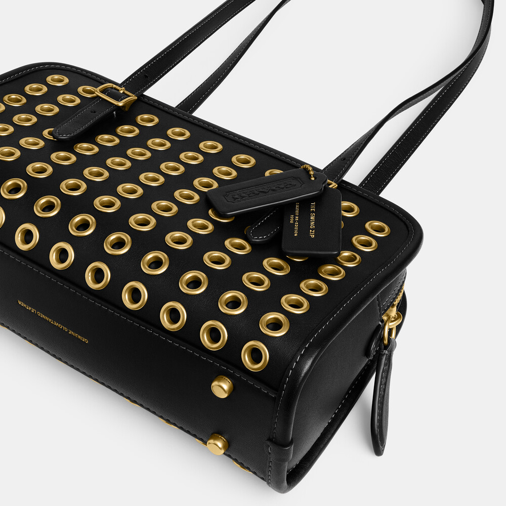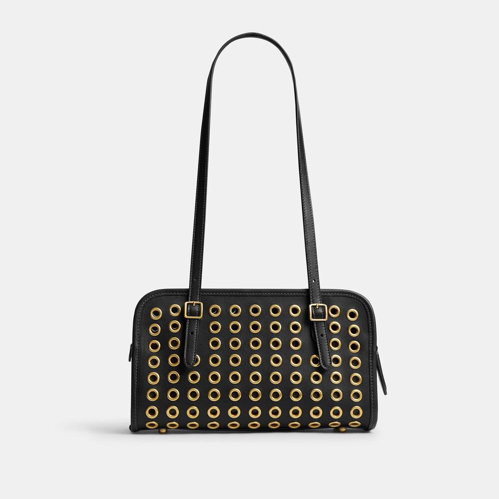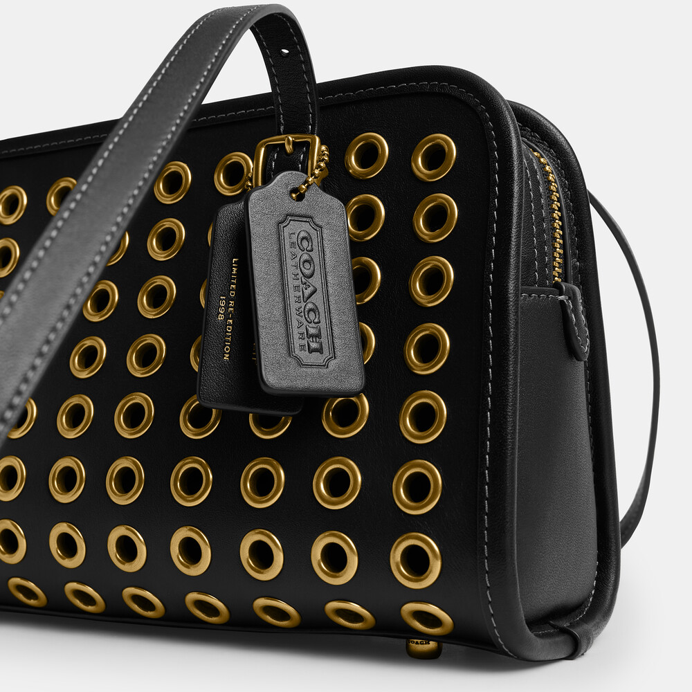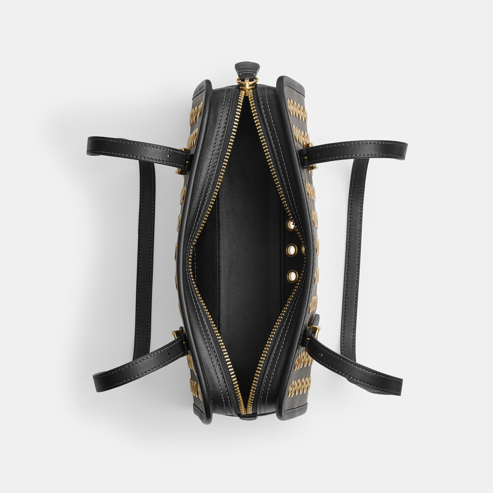 Glovetanned leather One credit card slot Inside zip pocket Zip closure, leather lining Adjustable handles with 27cm drop Four protective feet at base 25.5cm (L) x 15cm (H) x 8.5cm (W) The Coach Originals