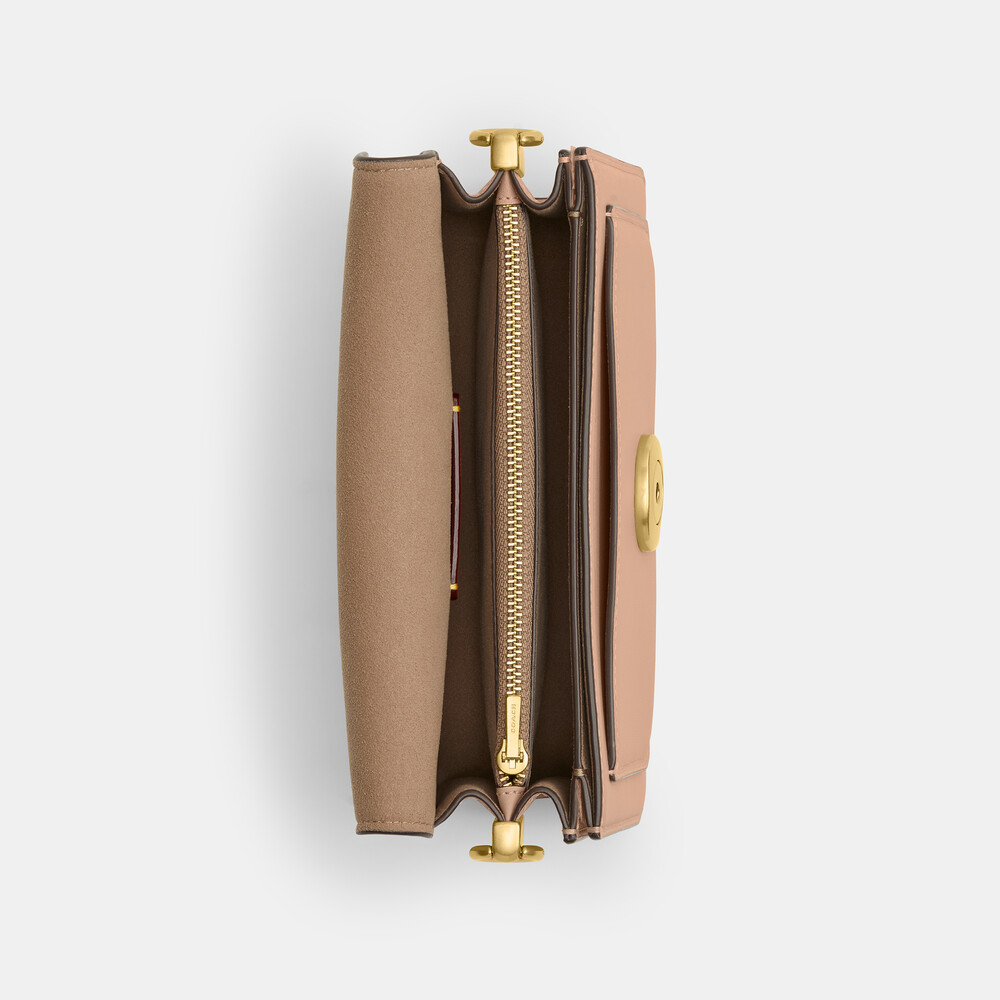 Glovetanned leather Inside zip and multifunction pockets Snap closure, leather lining Detachable handle with 13.5cm drop Outside slip pocket Detachable strap with 54.5cm drop for shoulder or crossbody wear 20cm (L) x 11cm (H) x 7cm (W)