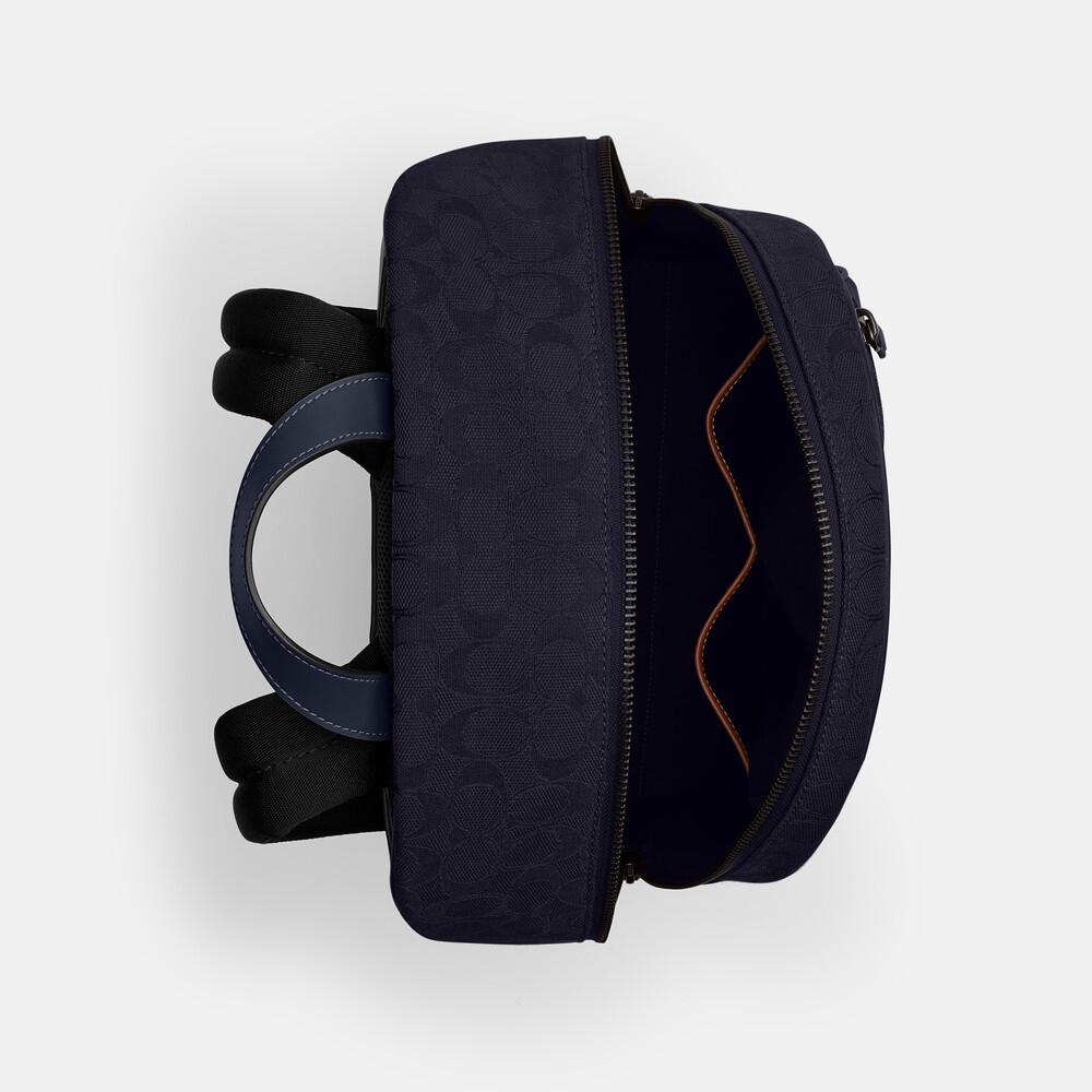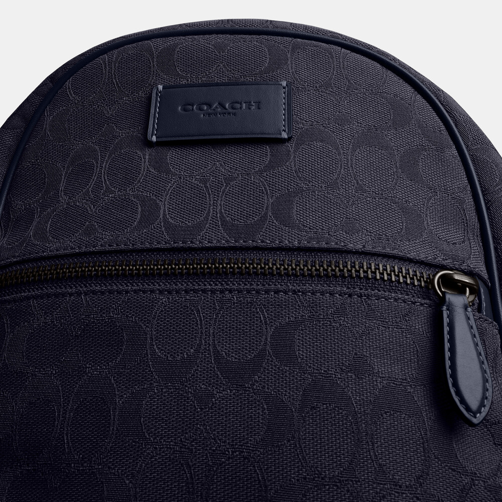 Signature jacquard and refined calf leather Inside zip, cell phone and multifunction pockets Zip closure, fabric lining Top handle with 7.5cm drop Outside zip pocket Adjustable shoulder straps Fits a 40cm laptop 27cm (L) x 40cm (H) x 13cm (W)Our Theo is a modern classic made for days on the go. Crafted of refined leather and our lightweight Signature jacquard, this organized backpack features space for a 16