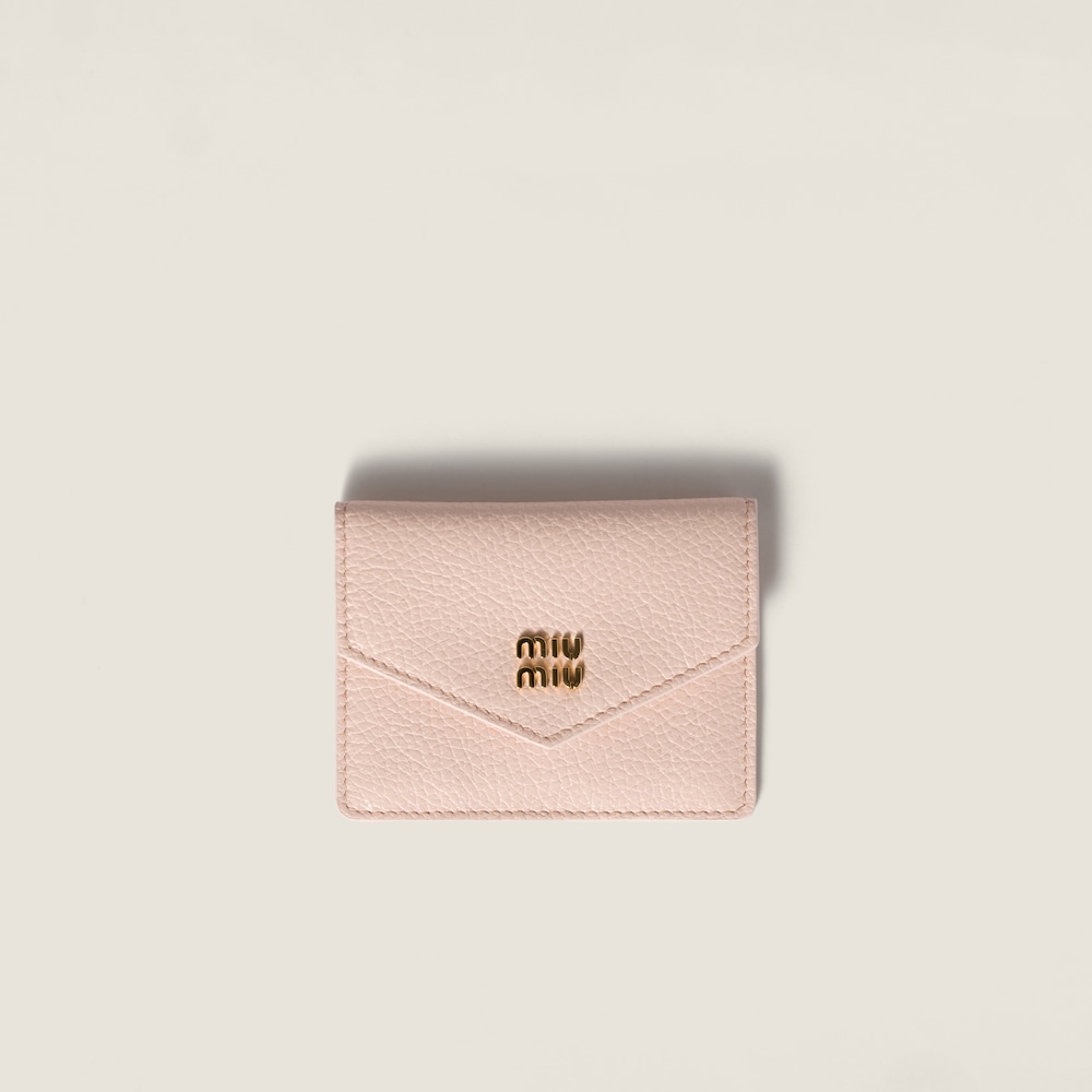 The simple charm of this card holder combines the uniqueness of soft leather and the gold-tone metal logo that makes the accessory a symbol of Miu Miu style.