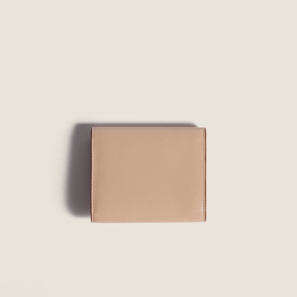 This sleek, compact wallet expresses its versatile elegance through the soft leather and logo detail on the clasp.