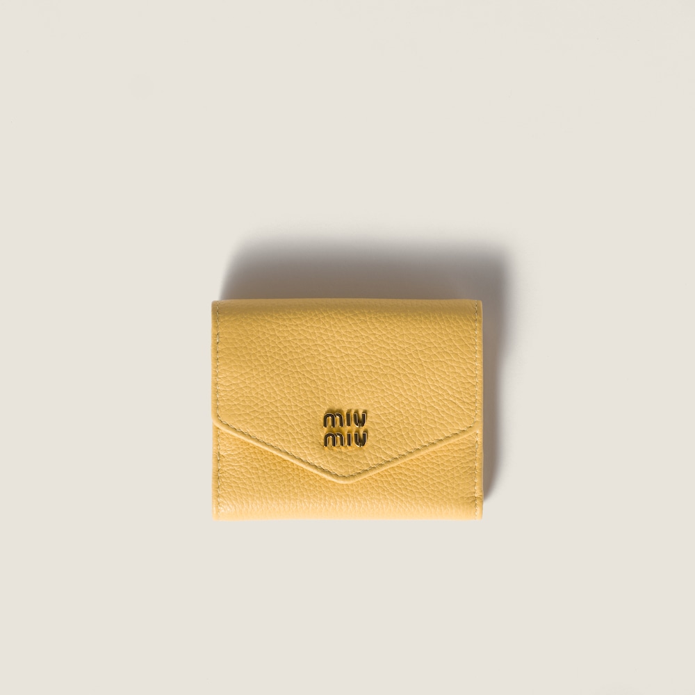 The quality of the leather and the iconic touch of the Miu Miu logo enhance the sleek lines of this new small leather wallet. Several internal compartments, card slots, and compact lines complete the design with functional details.