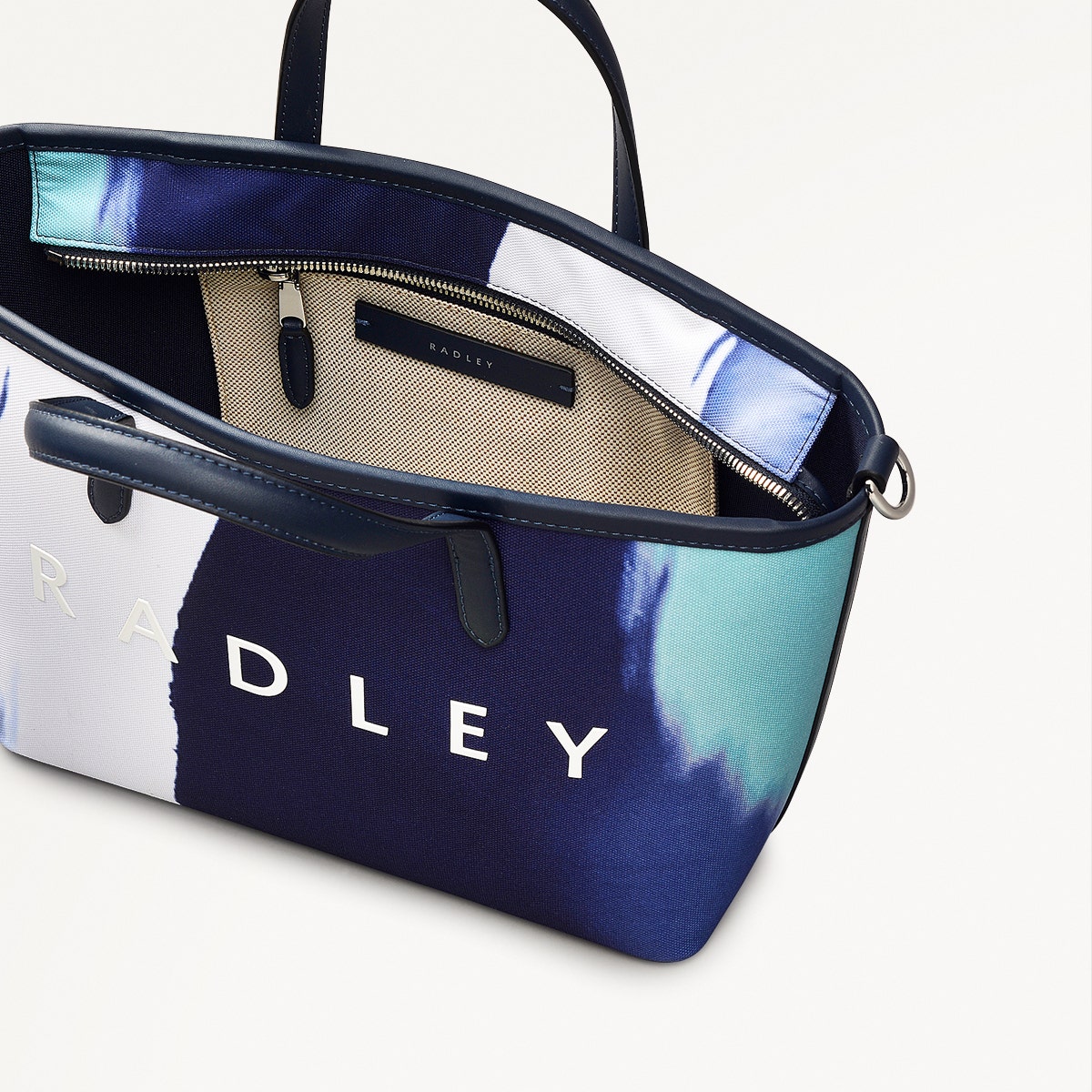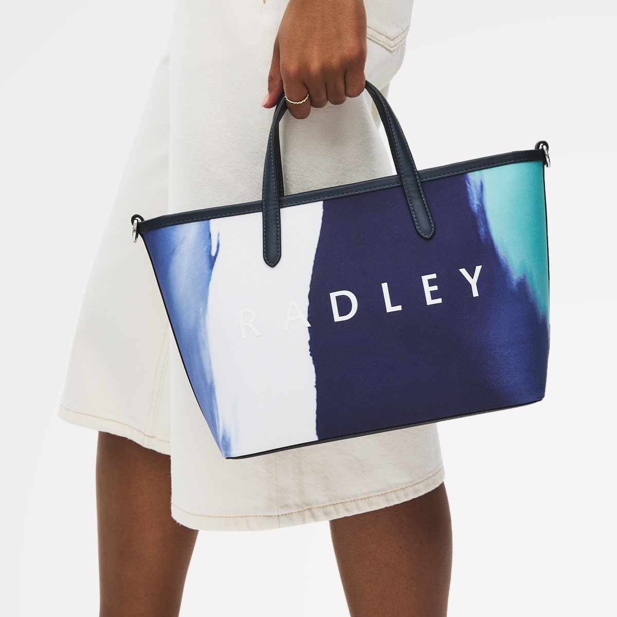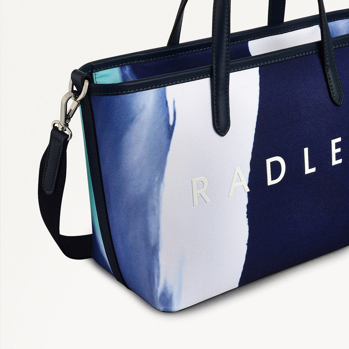 Flowing seaside - inspired stripes decorate the Southwell Gardens grab bag, the latest style in our Radley Responsible collection. Made using recycled polyester with water - based PU trims and a palette of blues, this casual design will transport you to the salty shores of your favorite holiday destination.