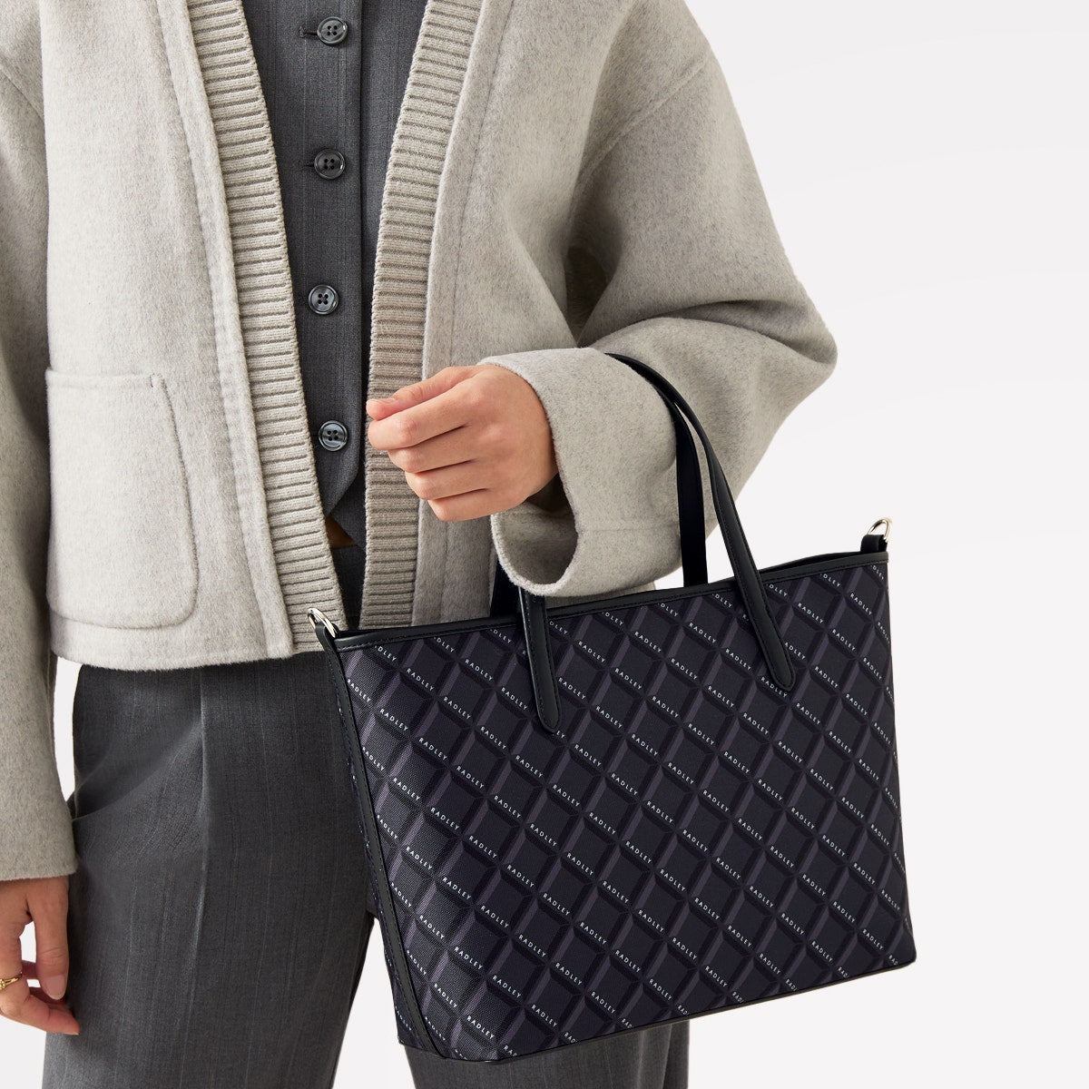 Made using recycled plastic bottles. Spacious and lightweight, this Southwell Gardens grab bag is a sustainable choice for carrying your everyday essentials or holiday must - haves. Finished with a tonal, geometric print and our signature monogram.