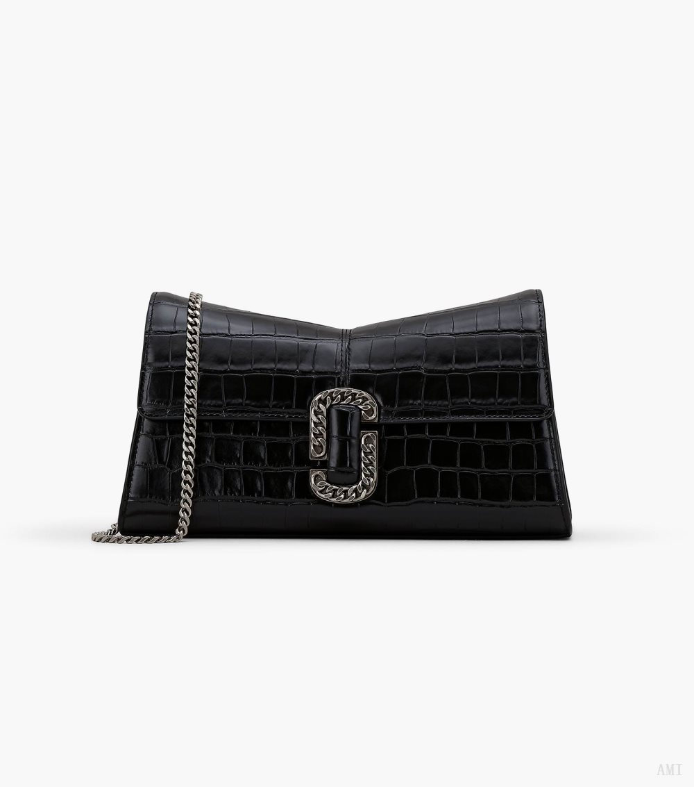 This textural iteration of the runway-inspired St. Marc clutch is refreshed in glossy croc-embossed leather. It's designed for a distinctive