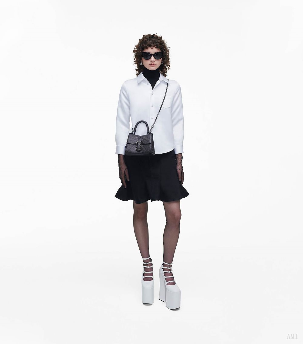 Everything you love about the runway-inspired St. Marc Mini Top Handle, now reimagined in the season's galactic glitter leather. This a petite silhouette is designed with a distinctive