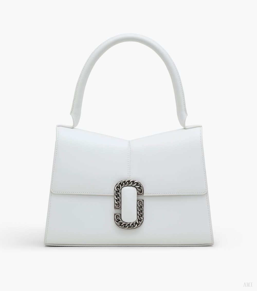 The runway-inspired St. Marc bag goes mega. This larger version of the polished top handle is designed for a distinctive