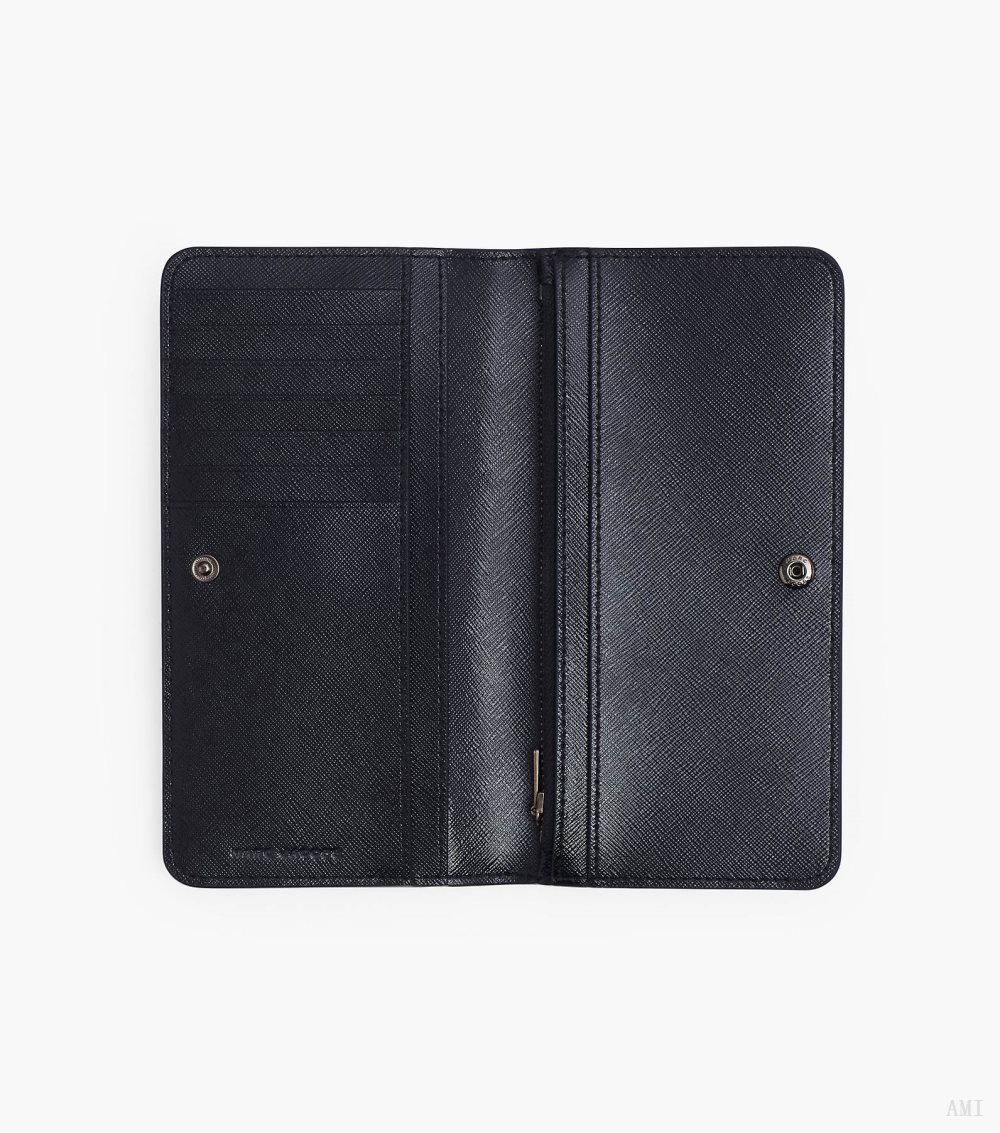 Inspired by the sleek design functionality of our iconic Snapshot, this long wallet is crafted from Saffiano leather and features a tonal J Marc at the front slip pocket. Inside, it includes three slip pockets, one internal zip coin pocket, and seven card slots. The wallet secures with a snap closure.2R3SMP048S07