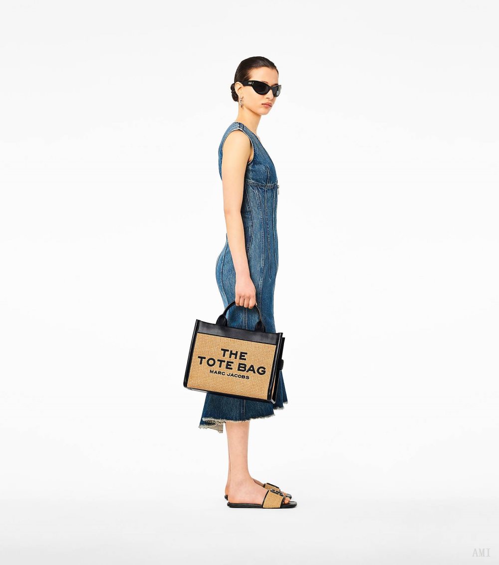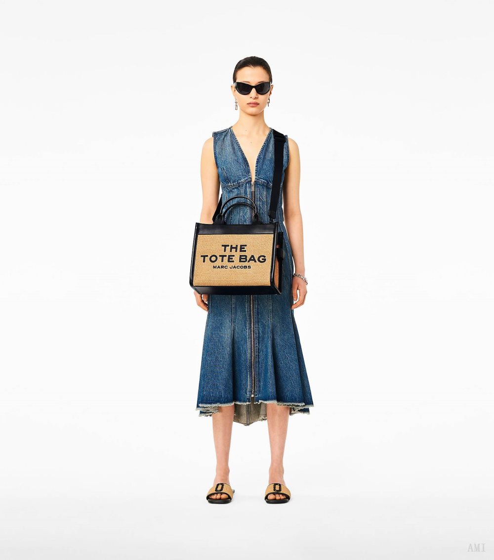 Our iconic medium tote bag is refreshed for the summer in an all-over woven texture with contrast leather trims and matte black hardware. Inside, you'll find a pop of color with a bright orange interior lining. The bag also includes one interior zip pocket, two slip pockets, and one card slot. Wear it by the top handles or as a crossbody for hands-free styling. Explore all the different tote bag sizes in our size guide.2P3HTT014H02