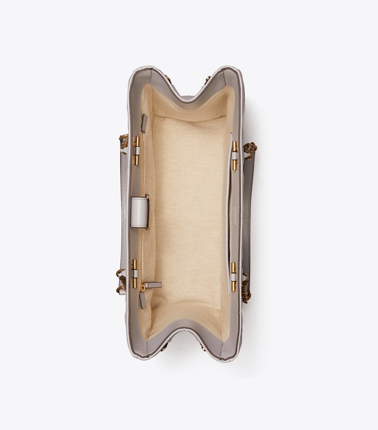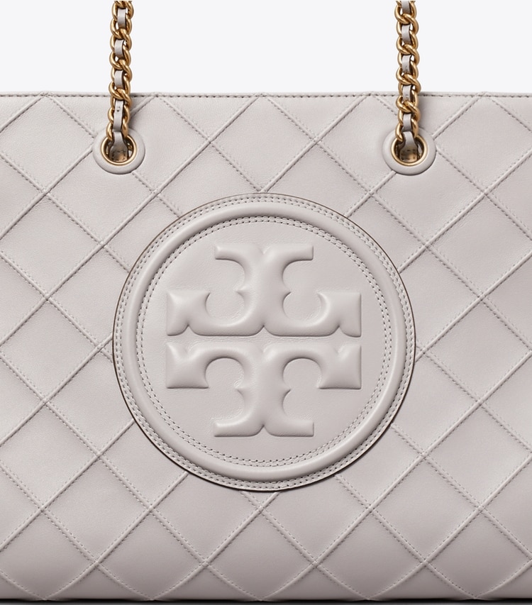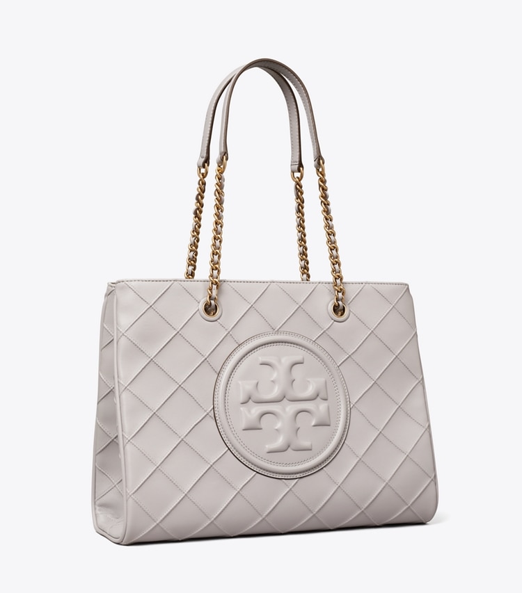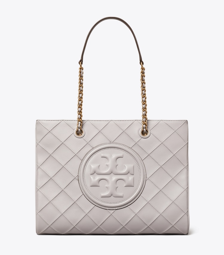 Enduring glamour. The Fleming tote is made of the softest leather with pintucks in a diamond pattern. The feminine silhouette has an oversized bombe Double T and brushed chain strap. ??Height: 10.4" (26.5cm); length: 13.8" (35cm); depth: 11" (27.9cm)Napa leatherCotton herringbone liningBridge with magnetic snap closure; snaps on gussetsChain and leather interwoven shoulder straps with 9.9" (25cm) drop attached to leather wrapped toggles; double leather shoulder guard for comfort1 interior front slit pocket, 1 interior back zipper pocketPintuck quilting techniqueDust bag included