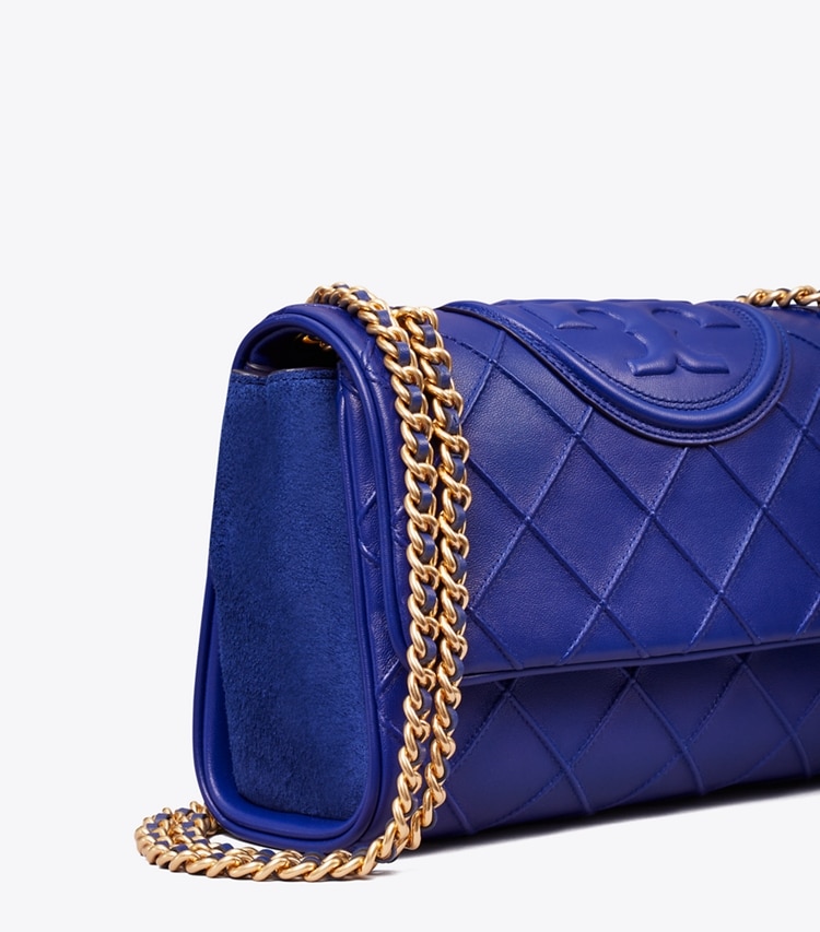 Enduring glamour. The new Fleming Soft Convertible Shoulder Bag is updated with pintucks in a diamond pattern and the softest leather. The feminine silhouette is sealed with an oversized bombe Double T. Braided with brushed chain, the strap can be worn long or short. ??Height: 6.9" (17.5cm); length: 10.6" (27cm); depth: 3.9" (10cm)Napa leather; suede trimBrass hardwareFlap with magnetic snap closureConvertible chain and leather interwoven strap with 22.2" (56.5cm) drop?1 interior front slit pocket, 1 center compartment zipper pocket