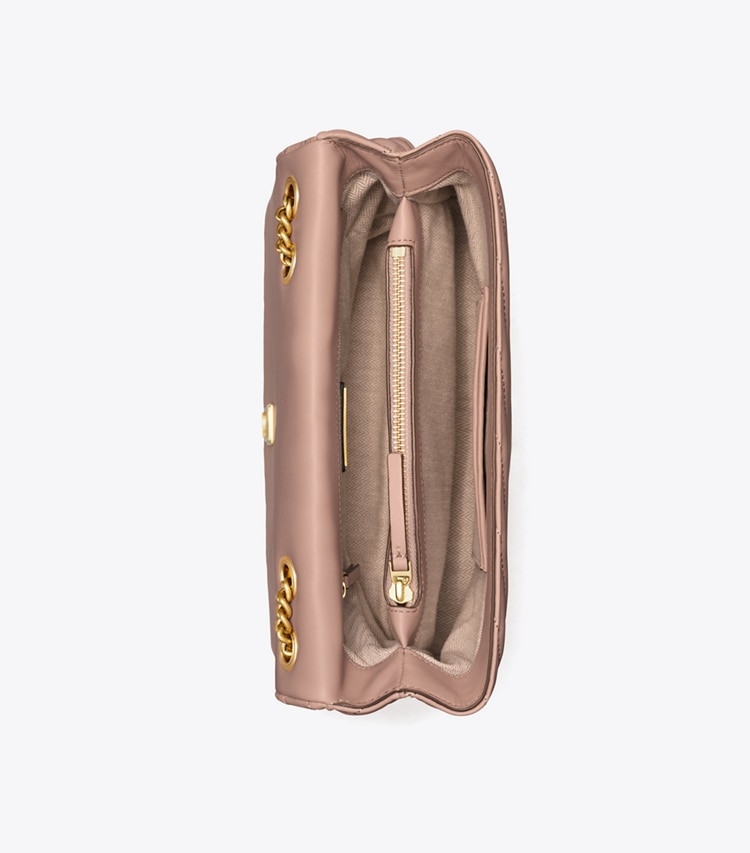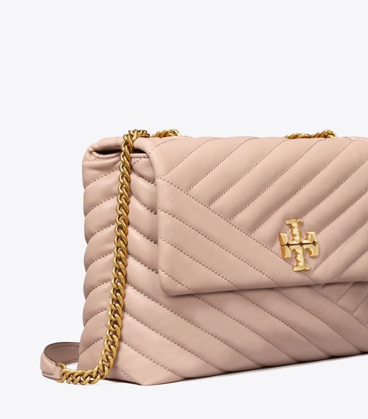 The Kira Convertible Shoulder Bag is made of soft chevron-quilted leather with beveled Double T hardware. An adjustable chain strap adapts in the moment