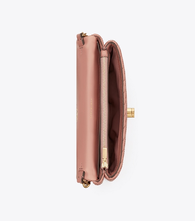 The Kira Moto Quilt Chain Wallet is made of soft micro-quilted leather with our beveled Double T as graphic turn-lock hardware. It is finished with a chain-and-leather crossbody strap.Height: 4.7" (12cm); length: 8.3" (21cm); depth: 1.6" (4cm)Calf leatherFlap with turn lock closureChain strap with 22.2" (56.5cm) drop; leather shoulder guard for comfort1 exterior back slit pocket, 1 interior zipper compartment, 1 interior back wall bill pocket, 4 interior back wall card pocketsQuilting techniqueDust bag included