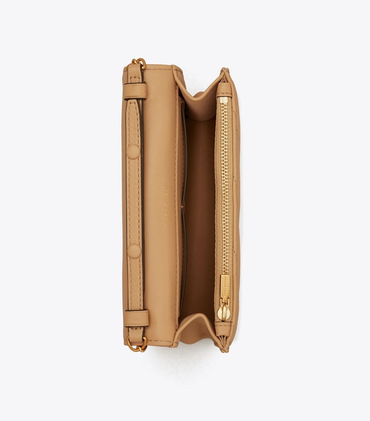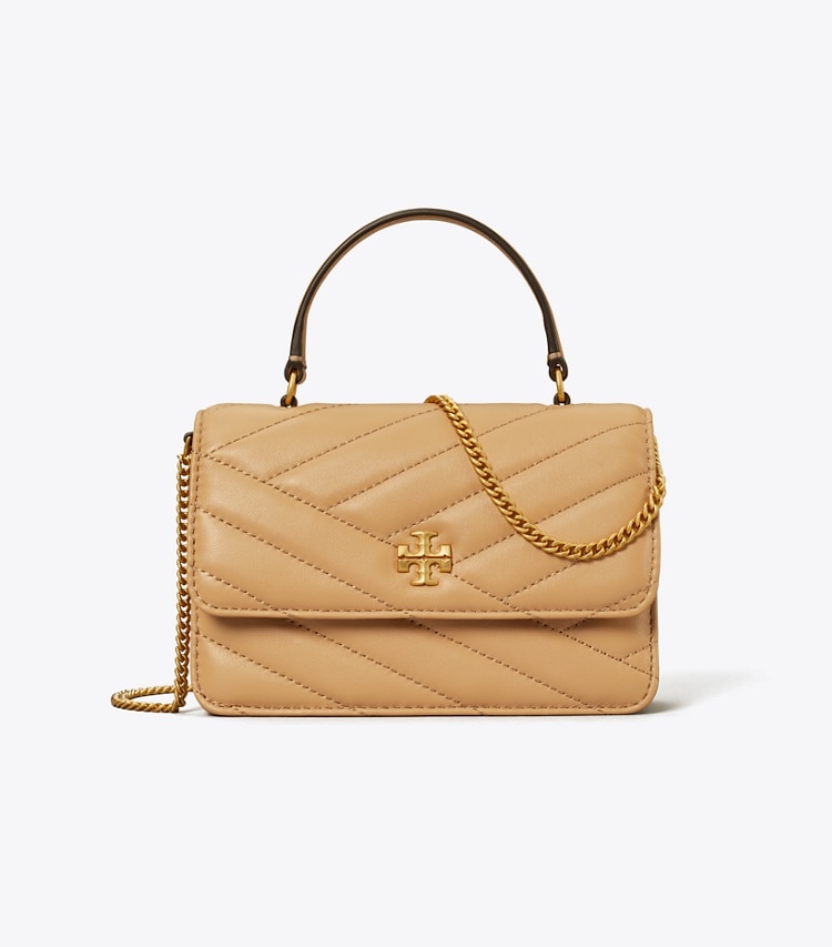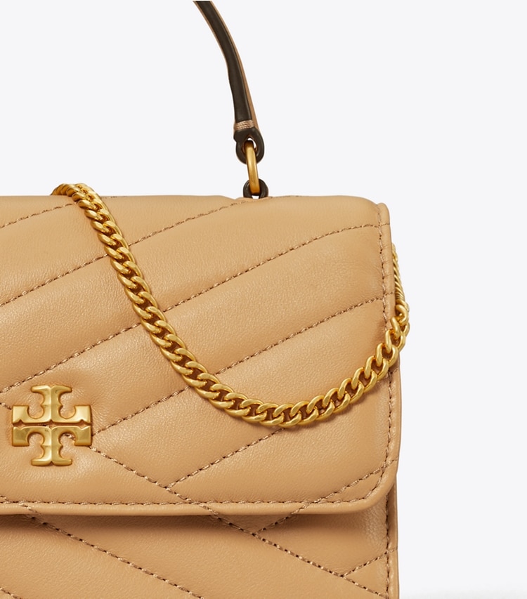 The Mini Kira Top-Handle Chain Wallet is made of soft chevron-quilted leather and features our Double T as graphic turn-lock hardware. Carry it by the top handle or with the chain shoulder strap.?Height: 4.5" (11.5cm); length: 6.9" (17.5cm); depth: 2.2" (5.5cm)Napa leatherFlap with magnetic snap closureTop handle with 3" (7.5cm) drop; adjustable, removable chain strap with 22.2" (56.5cm) drop1 interior zipper pocket, 2 interior back wall card pocketsQuilting techniqueDust bag included