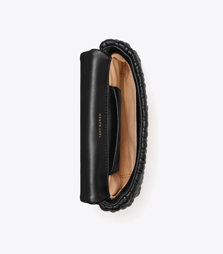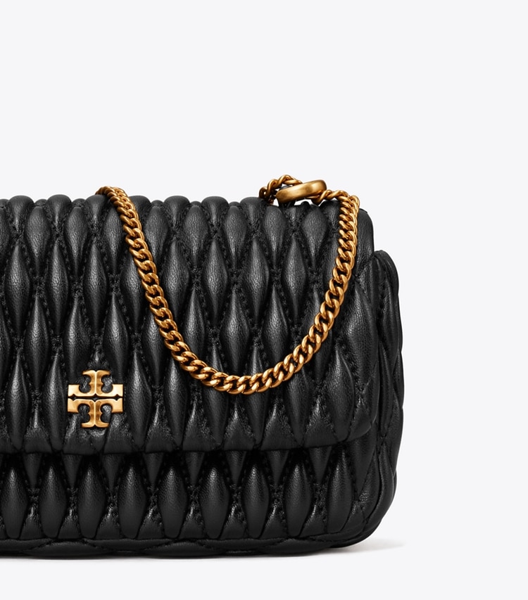 Smocking on ultra-soft leather. A new kind of quilting. The Mini Kira Flap Bag is finished with a beveled Double T. It has an interior card pocket and room for the essentials. Wear the curb chain strap doubled over the shoulder or long and crossbody.?Height: 3.9" (10cm); length: 6.9" (17.5cm); depth: 1.8" (4.5cm)Napa leatherMicrofiber lining with a suede-like finishNickel hardwareFlap with magnetic snap closureConvertible chain crossbody strap with 22.2" (56.5cm) drop1 interior slit pocketSmall diamond ruching techniqueDust bag included