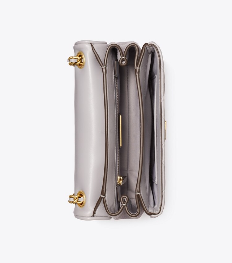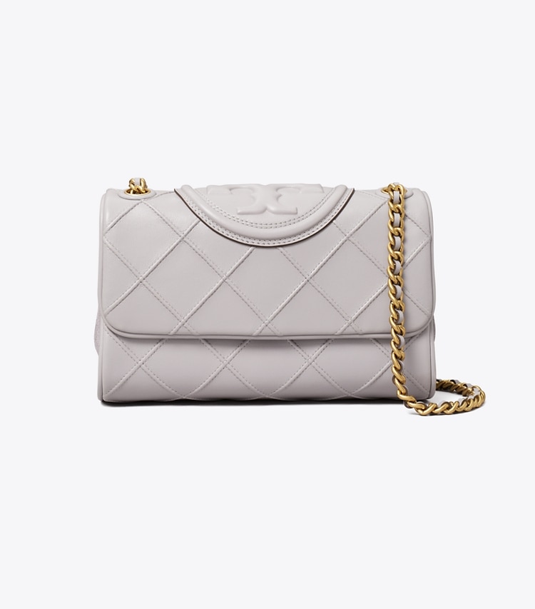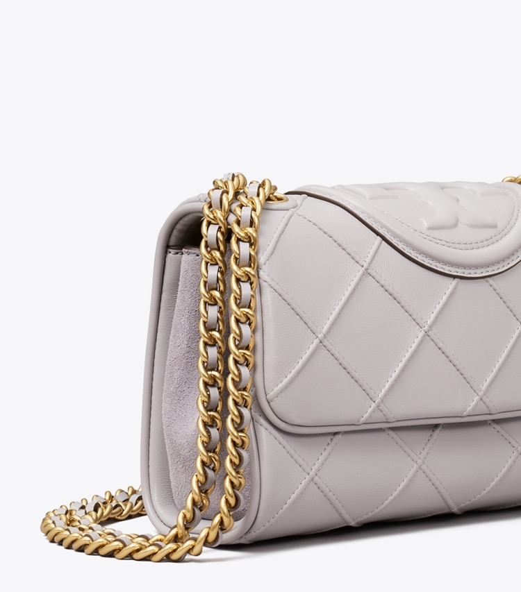 Enduring glamour. The new Small Fleming Soft Convertible Shoulder Bag is updated with pintucks in a diamond pattern and the softest leather. The feminine silhouette is sealed with an oversized bombe Double T. Braided with brushed chain, the strap can be worn long or short. ??Height: 5.7" (14.5cm); length: 8.7" (22cm); depth: 3.2" (8cm)Napa leather; suede trimBrass hardwareFlap with magnetic snap closureConvertible chain and leather interwoven strap with 22.2" (56.5cm) drop?1 interior front slit pocket, 1 center compartment zipper pocket