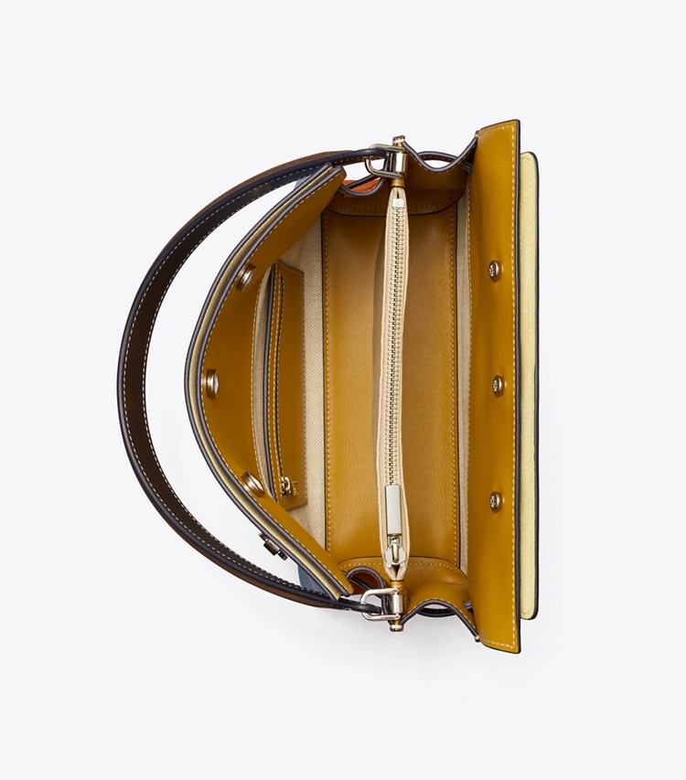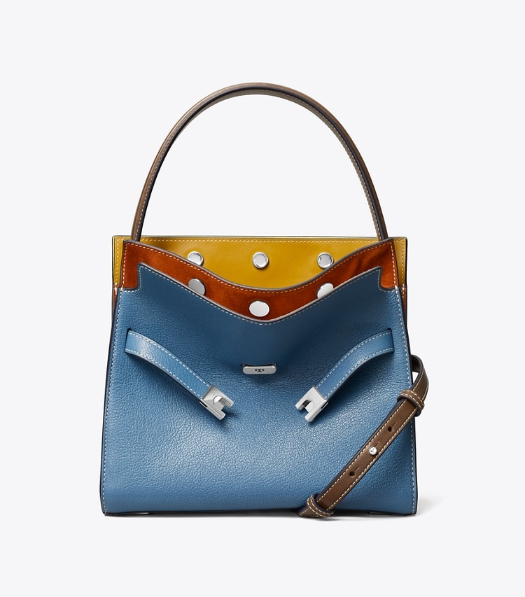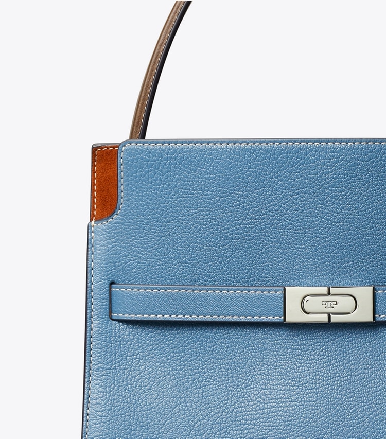Our Small Lee Radziwill Double Bag contrasts structure and softness. Composed of layers that unfold like the collar of a trench coat, it can be worn open, semi-buttoned or fully closed. Beautifully crafted with signature lock-and-key hardware. The collection is named for Lee Radziwill, who was fearlessly unique.??Height: 9.5" (24cm); length: 10.6" (27cm); depth: 4.7" (12cm)Pebbled leather; suede and leather trimCotton herringbone liningSnap stud closure; belted strap with slider buckleLeather top handle with 5.9" (15cm) drop; adjustable, removable shoulder strap with 14.2" (36cm) drop1 interior top zipper compartment, 1 interior back wall zipper pocket on 1 slit pocketHanging key charmProtective metal feetDust bag included