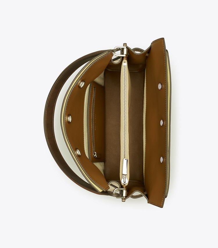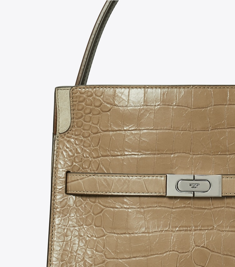 Our Small Lee Radziwill Colorblock Double Bag contrasts structure and softness. Composed of layers that unfold like the collar of a trench coat, it can be worn open, semi-buttoned or fully closed. Beautifully crafted with signature lock-and-key hardware. The collection is named for Lee Radziwill, who was fearlessly unique.??Height: 9.5" (24cm); length: 10.6" (27cm); depth: 4.7" (12cm)Croc embossed leather; suede and leather trimCotton herringbone liningSnap stud closure; belted strap with slider buckleLeather top handle with 5.9" (15cm) drop; adjustable, removable shoulder strap with 14.2" (36cm) drop1 interior top zipper compartment, 1 interior back wall zipper pocket on 1 slit pocketHanging key charmProtective metal feetDust bag included